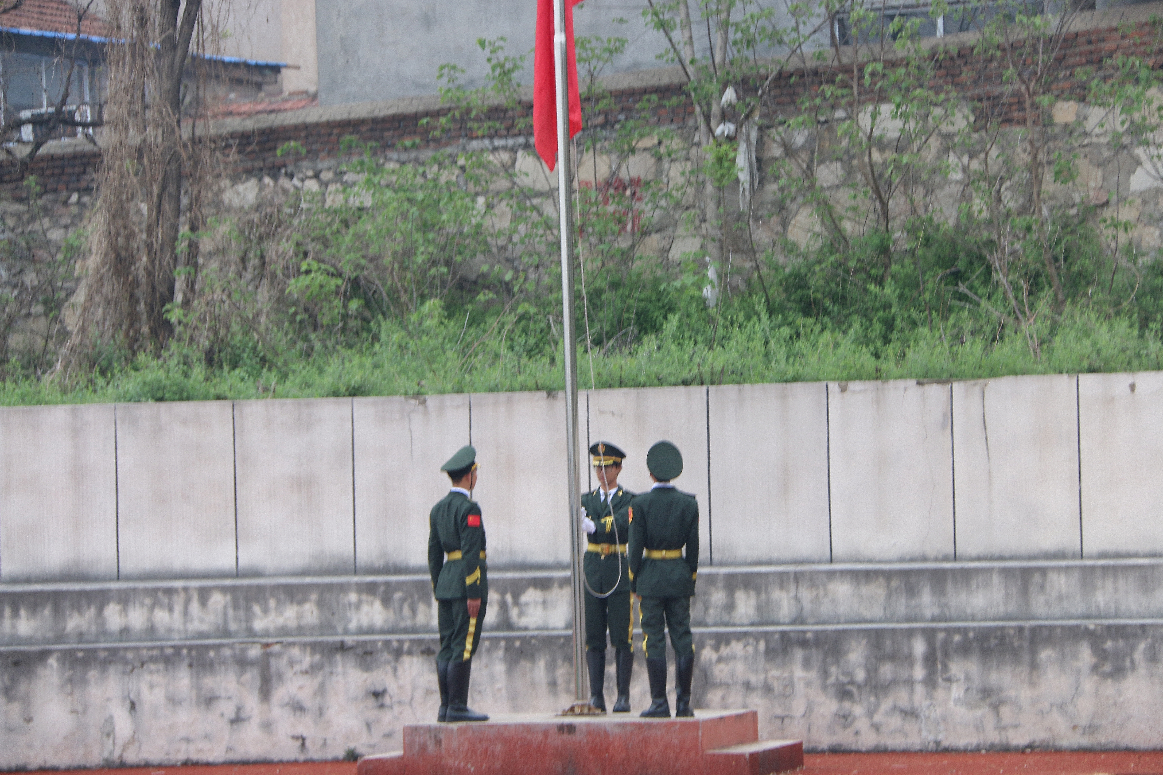 活动在清晨六点五十分开始,全体员工和辅导员早早来到操场,整齐地排队等候升旗仪式的开始。在雄壮的国歌声中,五星红旗冉冉升起,全场肃立,向国旗敬礼,表达了对祖国的热爱和敬意。
