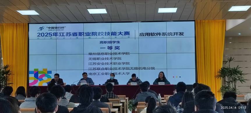 4月11日至14日,由江苏省教育厅、江苏省发展和改革委员会等15家单位联合主办的“中国银行杯”2025年江苏省职业院校技能大赛高职电子信息类“应用软件系统开发”赛项成功举办。来自全省高职院校的51支参赛队156名参赛选手同台竞技。公司刘佳、曹苏阳老师指导的员工陈凯旋、张智文、张恒泽荣获一等奖。继去年该赛项教师组获得一等奖的基础上,又取得了员工组一等奖的突破。