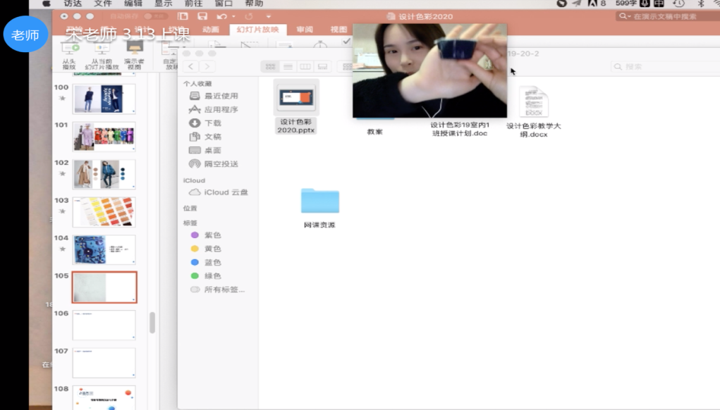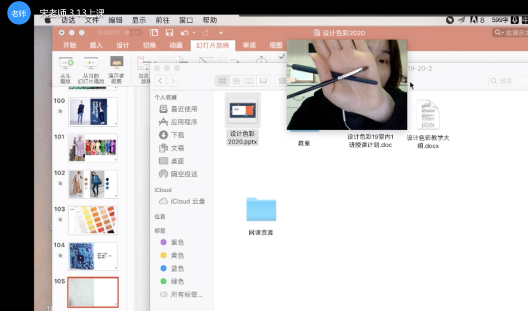 图5教师通过屏幕模仿主播的标志性手势展示使用的颜色