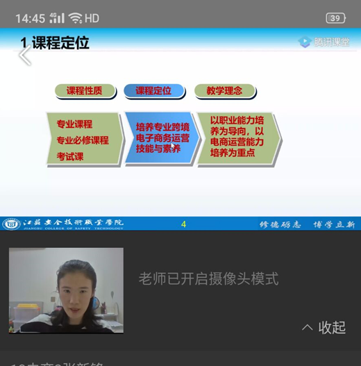 任晴阳老师主要讲授的是电子商务类课程,为了提高员工的在线学习兴趣,任老师在慕课、智慧职教等平台精选了一些满意的课程资源作为员工的线上学习资源,但是线上的资源不是完全符合课程标准,需要自己结合以前线下授课的资源,打通融合线上和线下,从而全面的提升员工的线上学习效果。经过几次的线上授课,发现员工在直播上互动时积极性不高,于是任老师采用了直播+职教云的互动模式,在职教云上的今日课堂中提前设置好互动方式和内容,比如提问、头脑风暴、讨论等,把职教云的互动优势充分挖掘出来,现在员工的线上参与度能够实现50%以上。