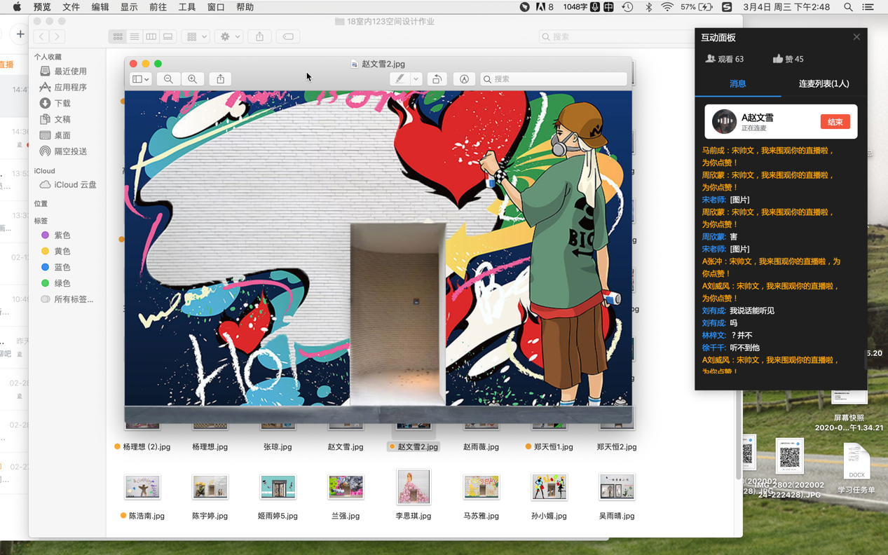 宋帅文老师在线上教学中承担了室内艺术设计专业三门课程的教学任务,由于课程内容偏重员工的实践性,为了在线教学过程中能充分调动员工的课堂活跃性以及实践环节的积极性,宋老师为在线课堂的教学实施设置了多样的互动环节和实践环节。线上学习过程中,宋老师围绕知识点准备了多样的图片案例,借用当红主播卖产品的语言方式,对图片包含的知识点进行提问,鼓励员工“拼反应拼手速”,根据每个问题的难度不同,设置人数不同的“幸运买家“,对抢答正确的前几位同学进行表扬,速度稍慢的同学会表示自己“太难了”、“ 请求主播问题补货”等。有时课堂进行在线作业展示环节,教师会与员工模仿电台进行连麦互动,这些小的环节设置,大大的提升了员工的注意力与活跃度。