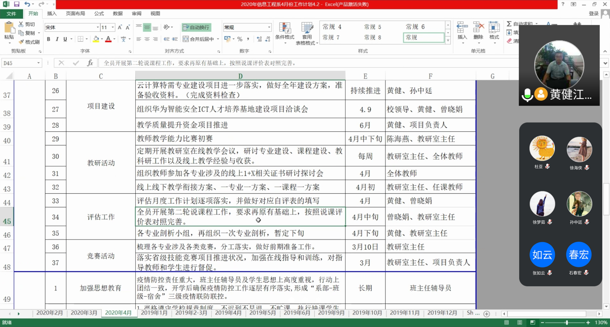 2020年4月5日上午10点,信息工程系教研室主任会议在线召开,会议由系主任黄健同志主持,全体教研室主任参加此次会议。